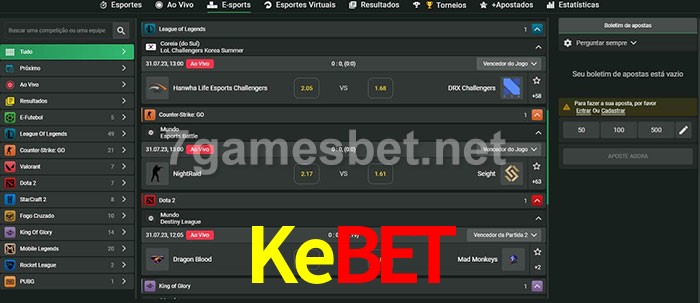 O Kebet oferece uma grande seleção de opções de apostas em e-sports com probabilidades competitivas